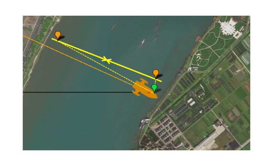 Entlang des Flussquerschnitts wurde in der AutoPlanner-Software vorab eine Rundfahrtlinie geplant, der das APACHE 4 USV autonom folgen sollte, um die Tiefen- und Strömungsdaten zu erfassen.