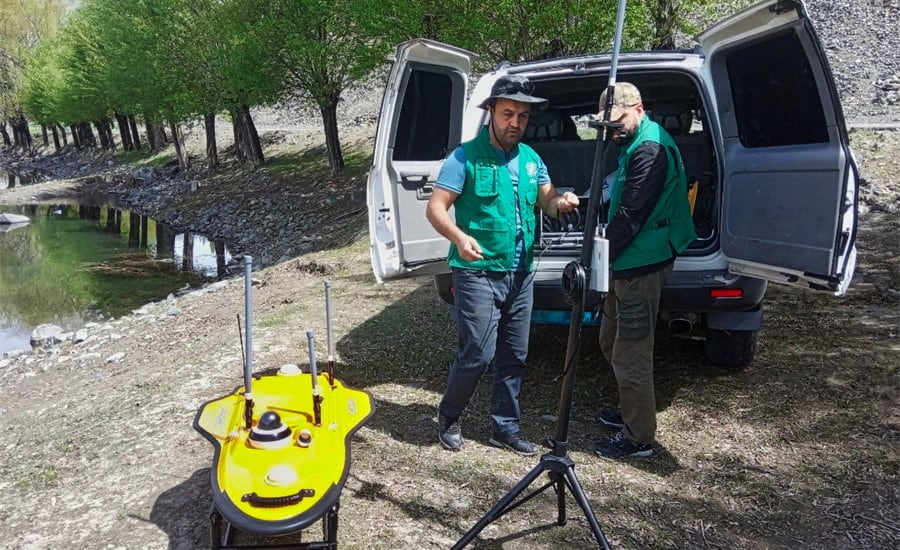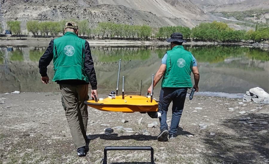 Por primera vez en Asia Central, la Agencia Aga Khan para el Hábitat (AKAH) utilizó el vehículo de superficie no tripulado (USV) APACHE 3 para realizar un estudio batimétrico con el fin de estimar el volumen de agua de los lagos y evaluar el impacto de las inundaciones por desbordamiento de lagos glaciares en las comunidades locales. En lugar de utilizar un USV tripulado en lugares de difícil acceso, la nueva tecnología no tripulada permite realizar el estudio de forma segura, utilizando una embarcación operada a distancia y proporciona una visualización en 3D de la topografía del lago.