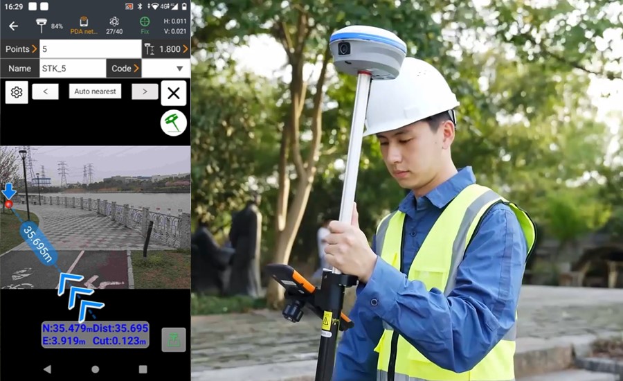 Las cámaras Starlight integradas proporcionan una navegación visual 3D envolvente. Basadas en una potente tecnología de procesamiento de imágenes, las cámaras emparejadas con el controlador ofrecen a los topógrafos una forma única de capturar coordenadas precisas en tiempo real. Los operadores de campo sólo tienen que seguir la flecha de dirección 3D y la distancia en el controlador en tiempo real para replantear los puntos. La guía visual 3D también está disponible para el replanteo de líneas y mapas CAD en el software LandStar™, lo que hace que la topografía sea fácil, intuitiva y eficiente.