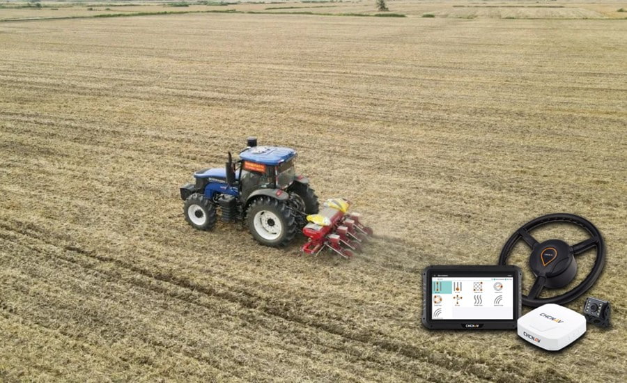 Figure 4. Le système de guidage automatique NX510 GNSS RTK de CHCNAV apporte une capacité d'automatisation instantanée aux machines agricoles pour la préparation des terres, l'ensemencement, la plantation, la pulvérisation, la fertilisation, la récolte et d'autres applications.
